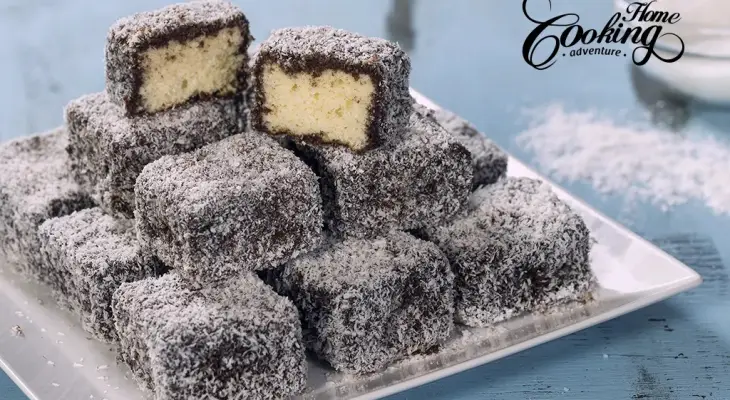 Lamingtons are small delicious desserts. This sweet cake is made of small butter cookies or sponge cakes covered with a small amount of jam and chocolate and then sprinkled with grated coconut. It has a very sweet taste and is usually enjoyed with warm drinks such as tea or coffee.