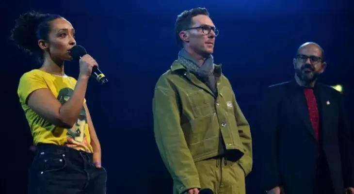 A host of international stars took part, including Benedict Cumberbatch, Florence Pugh, Richard Gere, Nicola Coughlan, and Riz Ahmed. Florence Pugh declared, “Silence in the face of suffering is not neutrality. It is complicity,” receiving a long round of applause.