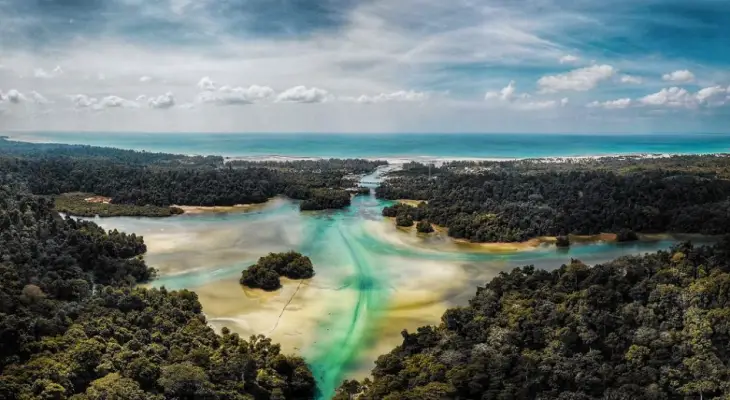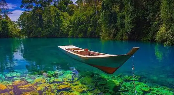 Directly adjacent to the Sulawesi Sea, the Labuan Cermin location is surrounded by mangrove forests and high hills as a source of fresh water in this type of lake. Fresh water here, before flowing into sea water, is trapped first in Labuan Cermin Lake. Labuan mirror lake is a lake that has very clear bluish water like a glass. This lake has two layers of water, the top layer is fresh, and the bottom is salty. And the strange thing is that the two waters don't mix at all. This is the reason behind the nickname of this lake as the Lake of Two Flavors.