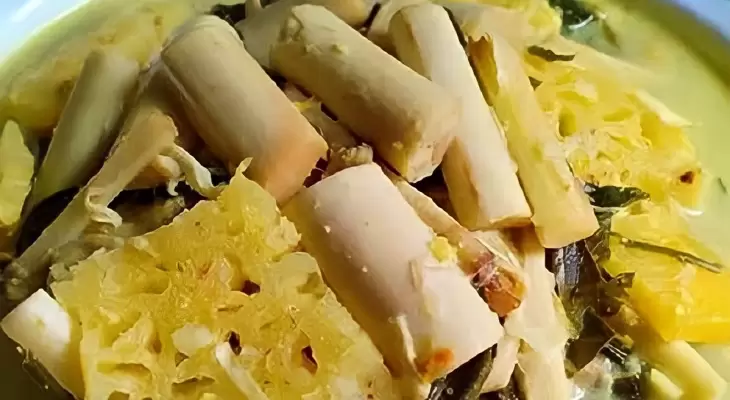 The taste of this rattan umbut dish is very unique if we eat it with other additional menus. There is a savory, sour, and slightly bitter taste from the umbut rattan vegetable. In addition, when combined with grilled fish that tastes sweet and chili sauce that tastes spicy, a unique taste will arise.