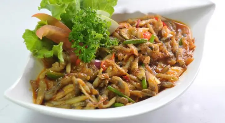 This dish is a typical seafood dish. Lorjuk, a type of shellfish that lives on muddy shores. The shape of lorjuk is not much different from bamboo shells and no less delicious than other shellfish.