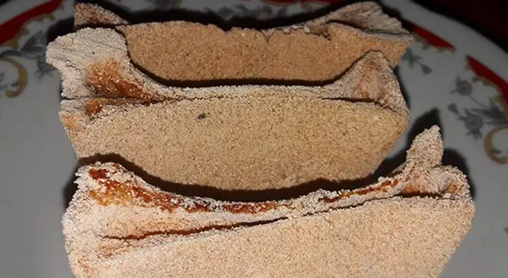 Sago bars have a shape like rectangular bars with a red-brown color. When bitten, the sago plate will slightly torture the teeth with its hard texture. Sagu Lempeng is made from the basic ingredients of sago flour which are molded using iron and then heated by roasting. The red color of the cake in Papua is called porna.