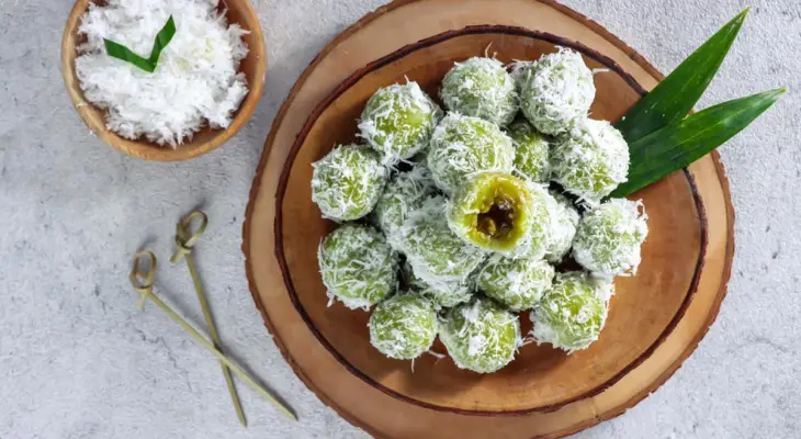 Who here doesn't like the traditional Indonesian snack 'Klepon'? Well, Klepon is a market snack that is a choice. Because this kelpon has a soft texture, inside the klepon is usually filled with brown sugar, and when you bite into it the sugar will usually melt in your mouth. Klepon itself consists of glutinous rice flour which is shaped into rounds, then mixed with brown sugar, and cooked by boiling it. Once cooked, the klepon is given grated coconut to give it a savory taste. So, to find Klepon cake, you can still find it, selling snacks at the market.