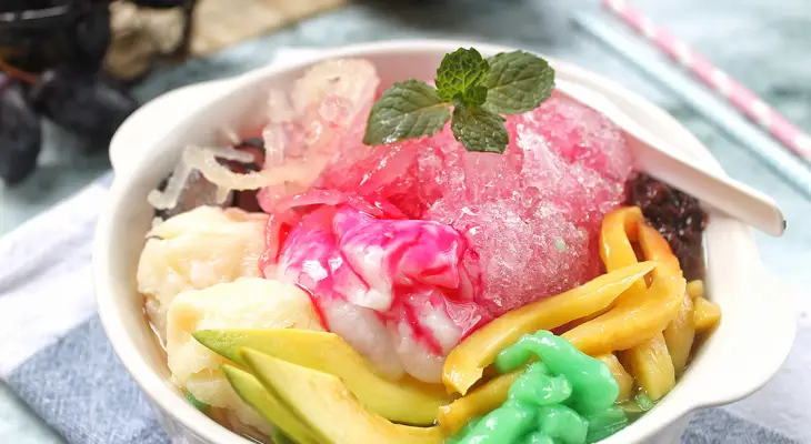 Holiday Ayo - Es Campur is a popular Indonesian cold dessert or drink that is made with a mix of sweet and savory ingredients. The name "Es Campur" literally means "mixed ice" in Indonesian. The dish consists of shaved ice that is mixed with a variety of sweet syrups, such as coconut, palm sugar, and fruit syrups, as well as diced fruits such as jackfruit, avocado, and mango. Other common toppings include jelly, grass jelly, and mung bean paste. The dish is often served in a tall glass or bowl, and is enjoyed as a refreshing treat on a hot day. In some variations of Es Campur, condensed milk or coconut milk is added to create a creamier texture.