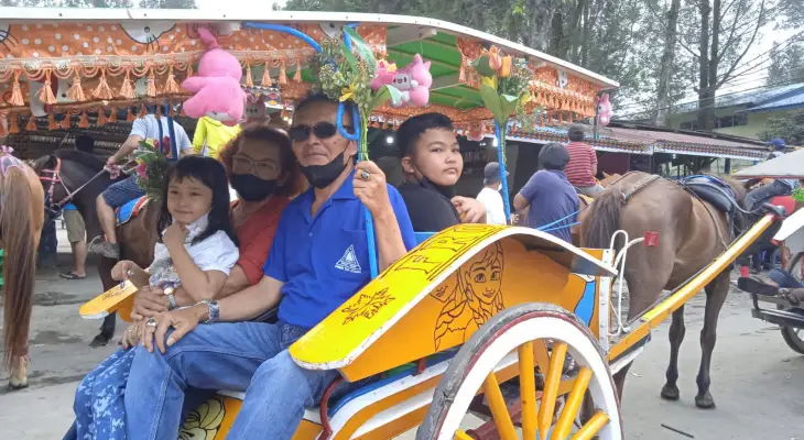 Tourists who visit Bearastagi can enjoy the thrill of riding a sado or horse-drawn carriage. Usually, the people who ride sado in Berastagi are families of 3 to 4 people.