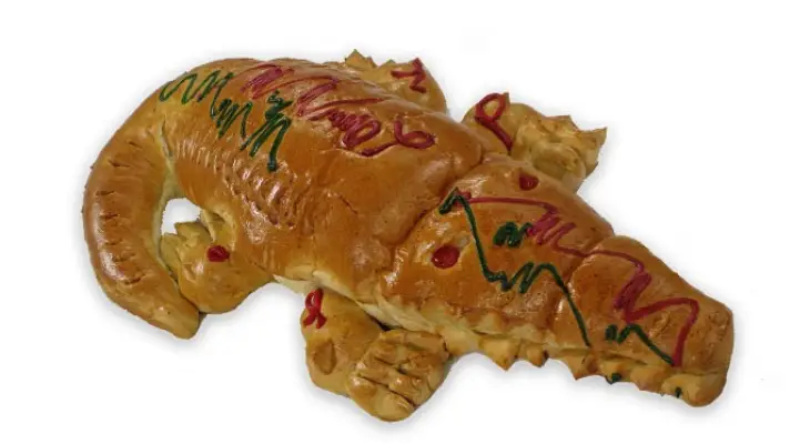 This loaf which is about 50cm long has a deep philosophy. Crocodile bread has a meaning as an expression of the loyalty of a married couple to live and die, sailing the household ark until the end of their lives.