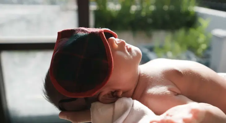 Babies can wear soft hats to stay comfortable even when their heads are bent. Also, make sure their strollers or strollers have sun protection.