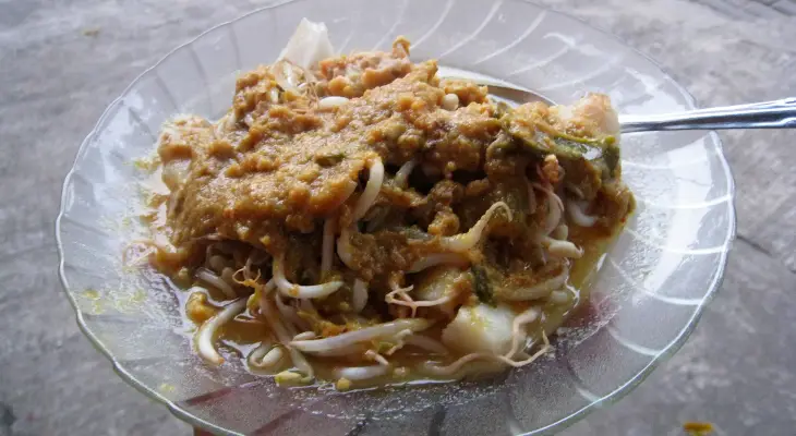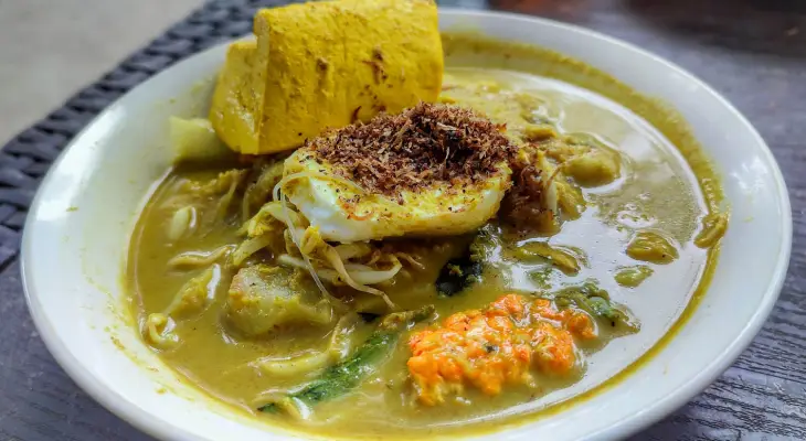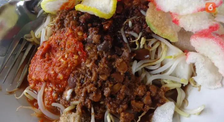 This typical Bogor food, which is famous for being rich in spices, does look like soup. This culinary will be more delicious if served with pieces of ketupat, boiled bean sprouts, shredded chicken, yellow tofu, oncom, basil leaves, and pieces of boiled egg as a topping.