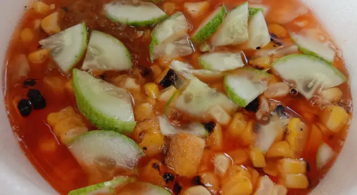 But there is something different about this one pickle. The pickles are made using the main ingredients of roasted corn and cucumber. It is also served with a splash of fresh vinegar sauce, which creates a slightly spicy and sour taste. Equipped with noodle crackers to make it more delicious.