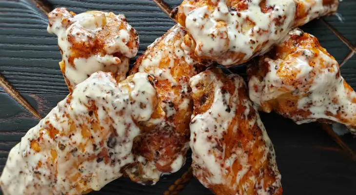 However, before the chicken wings are poured with white barbecue sauce, they are first processed with a mixture of salt, sugar, paprika, onion powder, white pepper, cayenne pepper, garlic powder and chili powder. After that, the wings are baked until perfectly cooked.