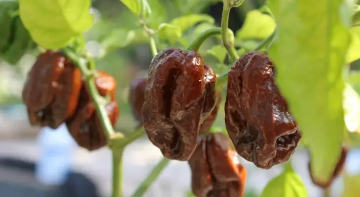 This chili is known as 7 pot douglah or 7 pot chocolate . This chili is easily recognized by its brown skin. However, don't think it will taste as sweet as milk chocolate.