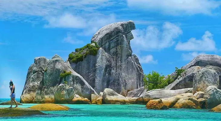 It is adjacent to Tanjung Binga Village. If you come to Indonesia, you must visit this unique tourist spot. The island isn’t quite big. It is surrounded by granites and white sand. Most of the visitors come here to find peace.