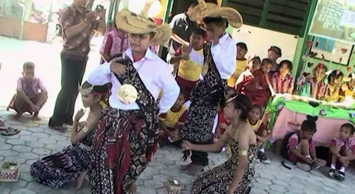 Male dancers wear long-sleeved traditional clothes accompanied by sarongs and slings typical of traditional clothes. Another attribute is the use of necklaces and head accessories which can be in the form of ikat or ti'i langga depending on each region.