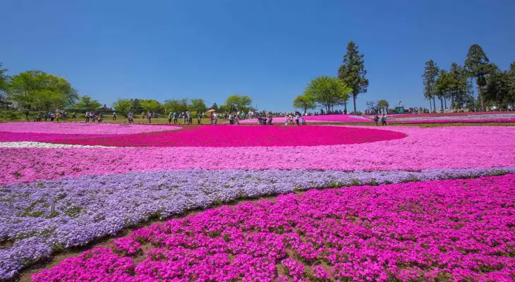 Holiday Ayo - From mid-April until early May each year Shibazakura Hill in Hitsujiyama Park in Chichibu turns a sea of pink with moss phlox flowers (芝桜, shibazakura).