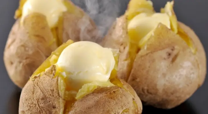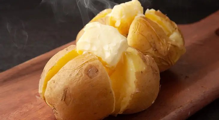 Jagabata is a typical Japanese food whose main ingredient consists of boiled potatoes smeared with butter, this snack looks very simple. But if you try it, the taste of this snack is actually very delicious. Butter that is smeared on top of the hot boiled potatoes will melt and seep into making the potatoes very tasty, some toppings such as cheese can also be added and will make Jagabata even more delicious, Jagabata is suitable to be eaten while it's still warm.