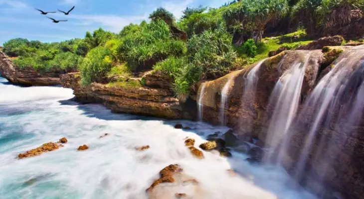 Jogan Beach, a Combination of Waterfalls and Blue Sea in Jogjakarta