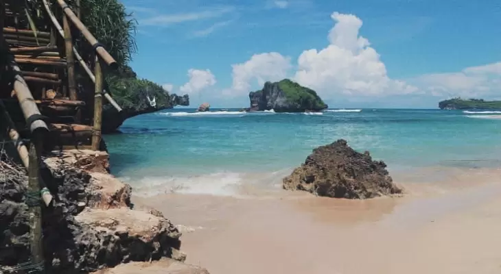Holiday Ayo - In the Gunung Kidul area, Yogyakarta, there is Ngandong Beach which has beautiful natural scenery, white sand and clean seawater, and coral rocks that also decorate the ocean.