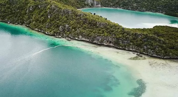 Holiday Ayo - Coral hills and green trees frame the lagoon with clear water like turquoise blue. Nirwana Lake is located in Kotalai Hamlet, Oeseli Village, Southwest Rote District, Rote Ndao Regency.
