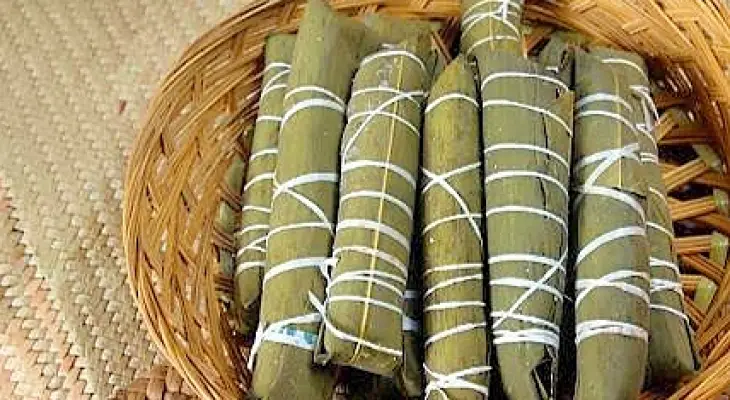 Pokon is made from glutinous rice wrapped in bamboo leaves. There is no other mixture other than just glutinous rice. However, the times have given the idea of making pokon, which is now mixed with coconut milk to make it more delicious.