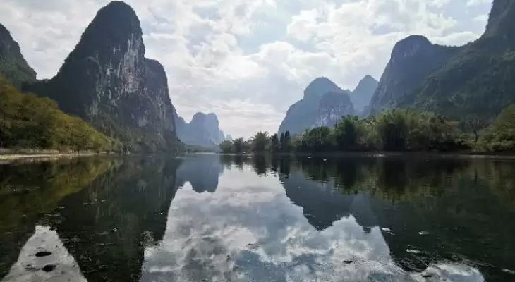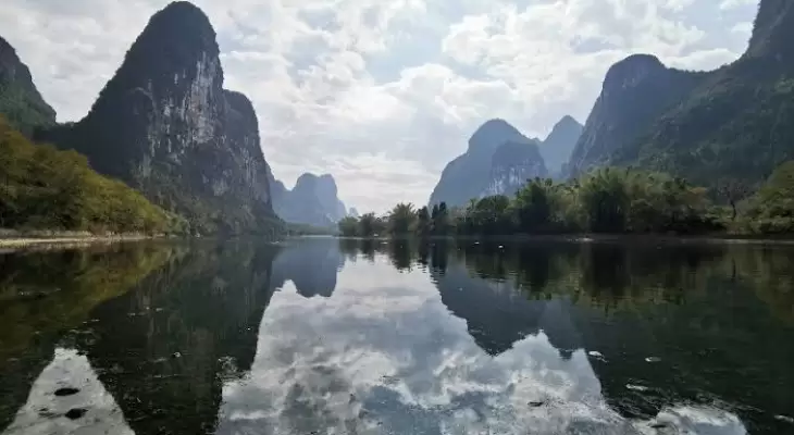 The 439-kilometer (273 mi) course of the Li and Gui Rivers is flanked by green hills. Cormorant fishing is often associated with the Lijiang (see bird intelligence).