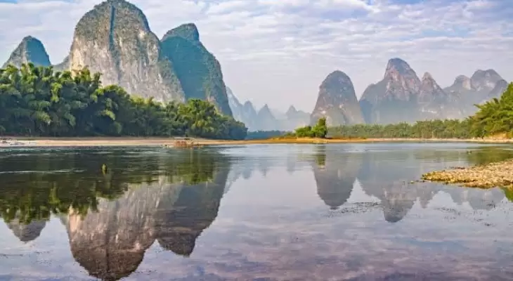 Holiday Ayo - The Li River or Li Jiang which belongs to the Xijiang River system in the Pearl River Basin, is a generic term for the tributary of the upper reaches of the Guijiang River and is located in the northeastern part of the Guangxi Zhuang Autonomous Region, China. It flows 215 kilometres (134 mi) from Xi'an County to Pingle County, where the karst mountains and river sights highlight the famous Li River cruise.